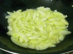 将白瓜切成条状,用开水焯捞出后沥干水分,加入适量的辣椒、蒜泥、醋等调料拌匀,口感脆嫩,开胃又下饭。